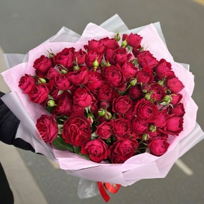 Букет из 17 красных кустовых пионовидных роз (50 см)