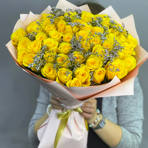 Букет из 51 лимонной розы с лимониумом